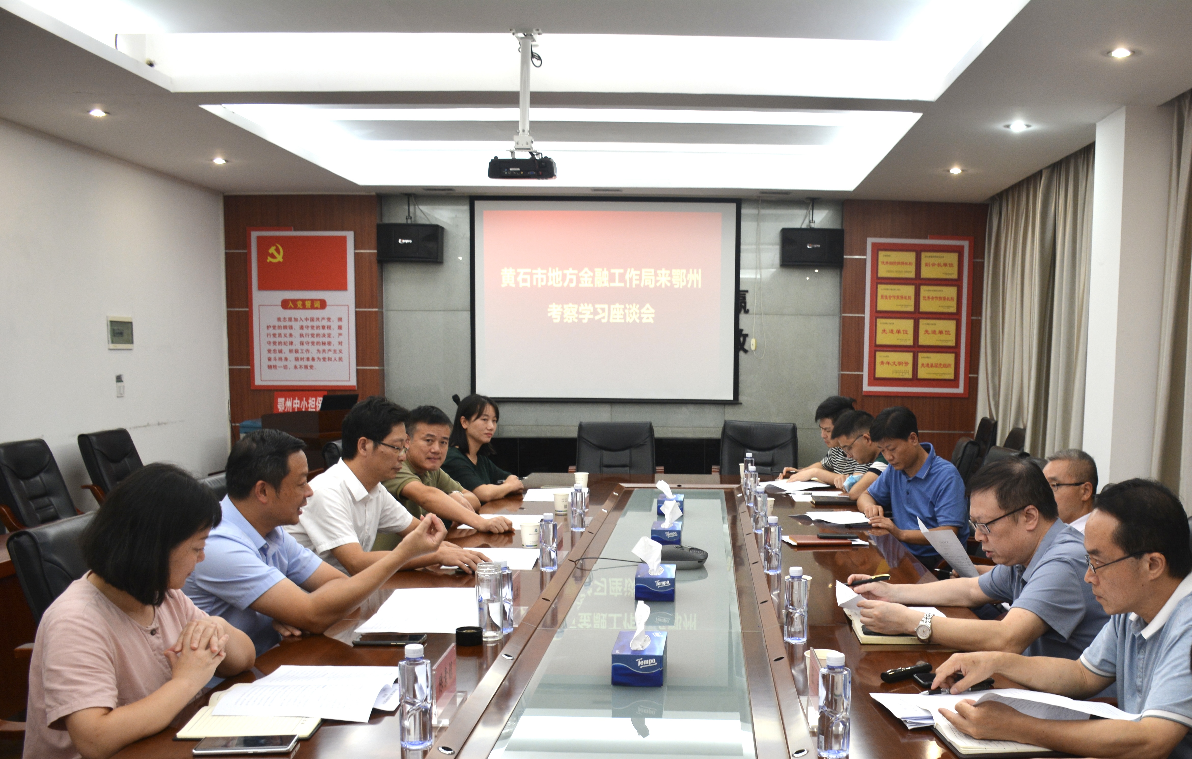 9月27日下午,黃石市金融工作局黨組書記、局長秦金波、黃石市擔保集團副總經(jīng)理余向陽一行到訪市中小企業(yè)擔保公司進行調(diào)研考察,鄂州市金融工作局黨組書記、局長秦劍濤陪同調(diào)研,市擔保公司董事長、總經(jīng)理洪志雄參加座談。