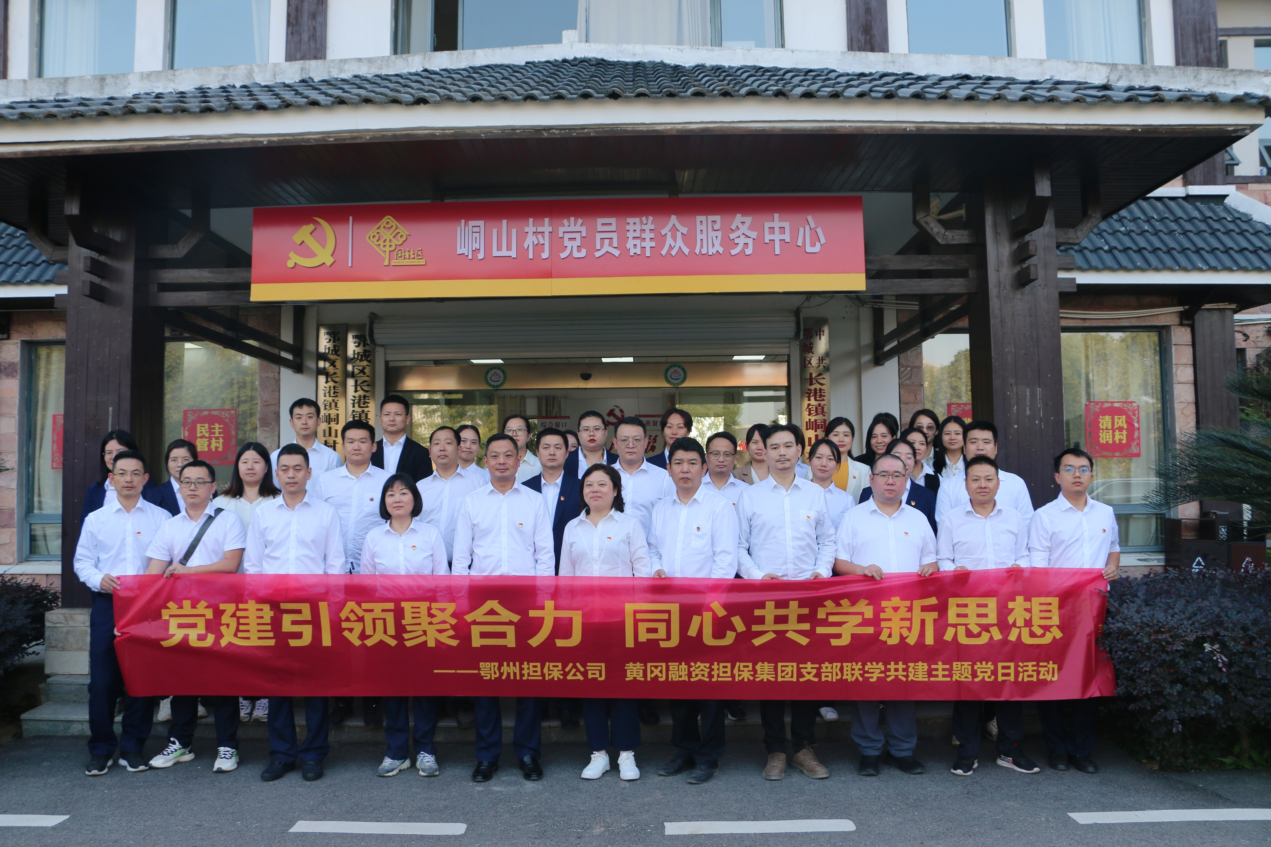 為加強(qiáng)政府性融資擔(dān)保體系的黨建交流,推進(jìn)學(xué)習(xí)貫徹習(xí)近平新時(shí)代中國特色社會(huì)主義思想主題教育的深入開展,10月20日,鄂州擔(dān)保公司聯(lián)合黃岡融資擔(dān)保集團(tuán)舉行主題為“黨建引領(lǐng)聚合力 同心共學(xué)新思想”的支部聯(lián)學(xué)共建主題黨日活動(dòng)。黃岡擔(dān)保集團(tuán)黨委書記、董事長王琳,鄂州擔(dān)保公司黨支部書記、董事長洪志雄與兩個(gè)黨支部37名黨員職工代表共同參加活動(dòng)。